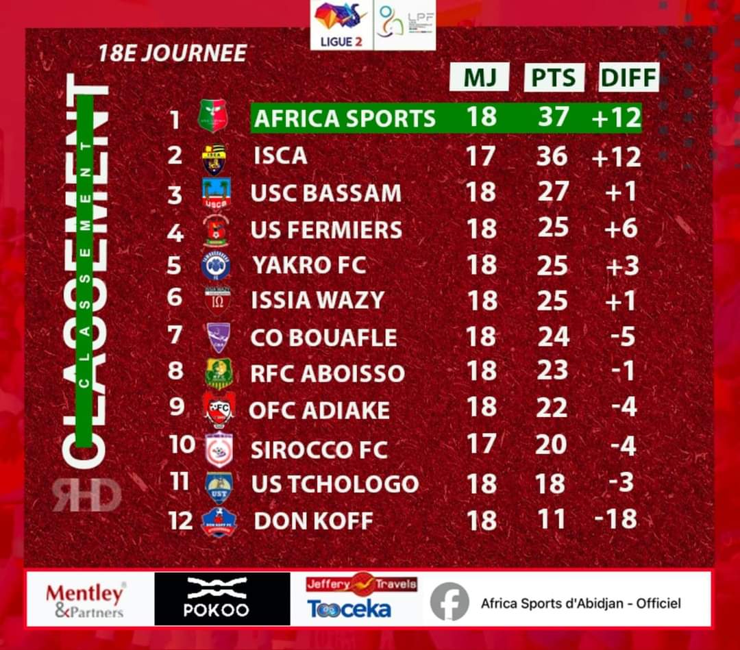 l’Africa Sports d’Abidjan contre tous. C’est honteux et pitoyable pour ces instances de la fif pourries de la tête aux pieds. Elles sont toutes ébranlées contre l’Africa Sports d’Abidjan. Les joueurs de l’Africa Sports valent mieux que des joueurs évoluant sur en ligue 1, des dirigeants attendent que les Aiglons échouent pour courtiser ses joueurs. Hélas l’Africa Sports d’Abidjan tient à sa remontée en ligue 1. L’ISCA va mordre la poussière à san Pedro face à sirocco qui ne se fera pas ridiculiser comme USC Bassam qui est sans ambition. C’est la fin du film qui fait toujours plaisir. Que les joueurs se ressaisisent. Les dirigeants de l’Africa Sports d’Abidjan feront le djob. C’est vraiment honteux de tricher et de comploter contre l’Africa Sports. C’est irresponsable de la part d’une commission qui a suspendu des arbitres qui ont rectifié d’accorder un penalty imaginaire à L’ISCA. Aucune sanction contre l’arbitre qui a giflé le défenseur central kanoute de l’Africa Sports d’Abidjan. Que les ennemis de l’Africa Sports d’Abidjan ne jubilent pas la montée en ligue 1 est imminente pour les Aiglons.
