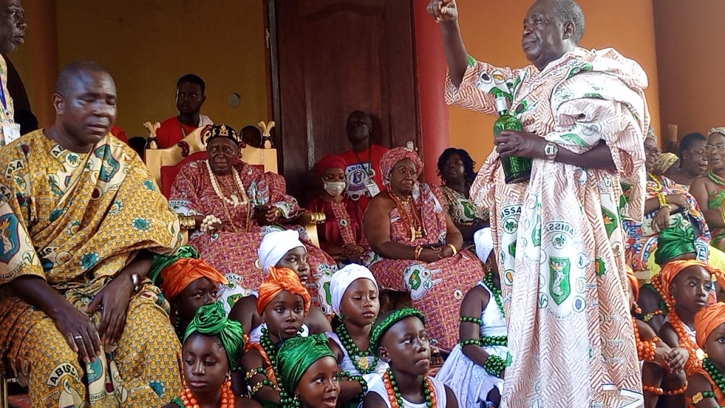 Le dimanche 27 octobre 2024 marque le Jour J de l’Abissa 2024, avec une série d’événements mémorables . La journée commence à 15h30 avec la cérémonie de remise de l’Edo-N’gbolé au peuple Nzima par le Roi au Palais Royal. À 16h, l’Edo N’gbolé est installé sur la place de l’Abissa, suivi des échanges de nouvelles entre le peuple et l’Edo-N’gbolé À 16h50, une présentation des instruments de musique de l’Abissa est organisée, avec l’instrument du jour. À 17h, l’Abissa de la rencontre des générations a lieu, et à 18h30, un apprentissage populaire de la danse de l’Abissa est proposé. Cette journée est un moment fort de célébration culturelle et de rencontre pour les familles Nzima de Côte d’Ivoire et du Ghana, renforçant les liens communautaires et la préservation du patrimoine culturel.