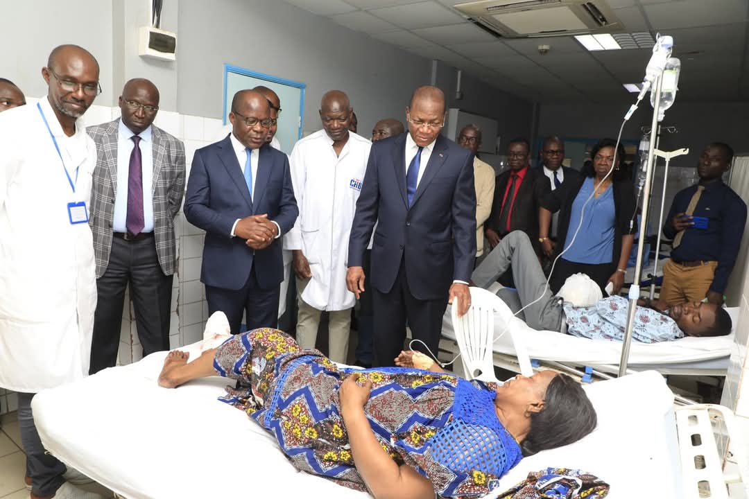 Le jeudi 26 décembre 2024, un bus de la Société des Transports Abidjanais (Sotra) a fait une sortie de route et a terminé sa course dans la fosse d’un chantier en construction à la Sorbonne du Plateau. Cet accident tragique a impliqué 26 victimes, dont un décès et 25 blessés qui ont été évacués d’urgence vers les centres hospitaliers universitaires de Cocody et de Treichville.Aussitôt informés, le Ministre de la Santé, de l’Hygiène Publique et de la Couverture Maladie Universelle, M. Pierre N’Gou Dimba, ainsi que son homologue de la Construction, du Logement et de l’Urbanisme, M. Bruno Nabagné Koné, se sont rendus au chevet des blessés. Leur présence visait à s’imprégner de l’état de santé des victimes, mais aussi et surtout à leur apporter le soutien du Gouvernement.Selon le bilan officiel, les blessés sont actuellement en cours d’examens médicaux afin d’établir un diagnostic précis de leur état de santé