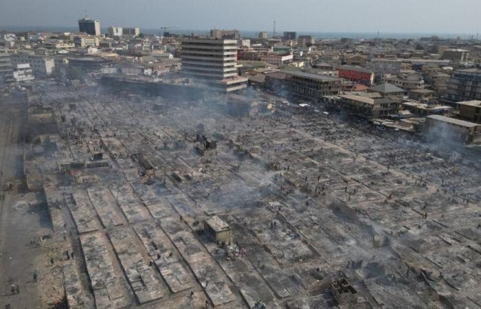 Un énorme incendie a consumé mercredi le marché de Kantamanto, le principal pour la vente de vêtements de seconde main du Ghana, dans la capitale Accra. Cette catastrophe, qui affecte des milliers de commerçants, va entraîner des pertes considérables pour l’économie locale. jeudi 2 janvier 2025, des ruines du gigantesque marché aux fripes de Kantamanto, au cœur du quartier d’affaires d’Accra, ravagé par un énorme incendie.Un énorme incendie a réduit en cendres le principal marché de vente de vêtements de seconde main du Ghana dans la capitale Accra.Le feu déclenché mercredi 1er janvier au soir, a ravagé de larges parties du gigantesque marché aux fripes de ce pays d’Afrique de l’Ouest, le marché de Kantamanto, déplaçant des milliers de commerçants, ont rapporté les autorités du pays en charge de la gestion des catastrophes.Le marché aux fripes de Kantamanto, qui abrite plus de 30 000 commerçants et est situé au cœur du quartier d’affaires d’Accra, est une source de revenus cruciale pour beaucoup. La catastrophe a suscité une vive émotion parmi les commerçants et les riverains.Des centaines de vendeurs, dont beaucoup étaient spécialisés dans la revente de vêtements de seconde main importés de l’étranger et notamment d’Europe, font désormais face à un avenir incertain.Le service national de lutte contre les incendies du Ghana (GNFS) a dû déployer treize véhicules anti-incendie pour lutter contre le désastre.Jeudi, des ruines fumantes à perte de vue avaient remplacé les allées jadis très animées du marché, témoignant de l’impressionnant ravage des flammes.Des pertes considérables pour l’économie locale« C’est une catastrophe », a commenté Alex King Nartey, porte-parole pour le GNFS. « Nous n’avons pas enregistré de personnes gravement blessées, mais la perte pour l’économie est énorme. »« Selon les premiers éléments de l’enquête, un défaut électrique pourrait avoir causé le déclenchement de l’incendie, mais nous n’excluons pas la piste de l’incendie criminel », a-t-il souligné auprès de l’AFP.Selon le porte-parole, les opérations pour éteindre complètement l’incendie pourraient se poursuivre jusqu’à vendredi.Selon les services de secours, la perte des marchandises est évaluée à des millions dans la monnaie locale.Le gouvernement ghanéen n’a pas pour le moment annoncé de réponse formelle à ce drame.Pour des commerçants comme Fred Asiedu, 45 ans, cet incendie est une catastrophe. « Tout ce que je possédais était ici – mes marchandises, mes économies, mon avenir… Désormais, tout est perdu », se lamente-t-il. « Comment est-ce que je recommence mon activité ? Le gouvernement doit intervenir. Sans aide, notre vie deviendra insupportable. »
