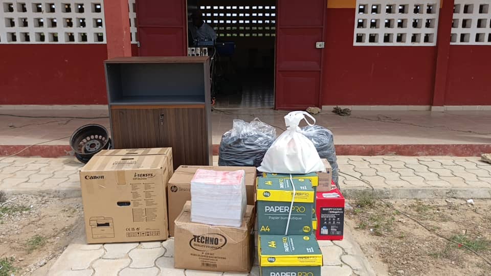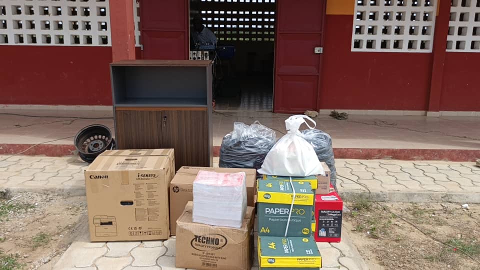 Le don de M. Ollo comprend des équipements essentiels tels que des ordinateurs, une photocopieuse, du mobilier de bureau et divers matériels pédagogiques.