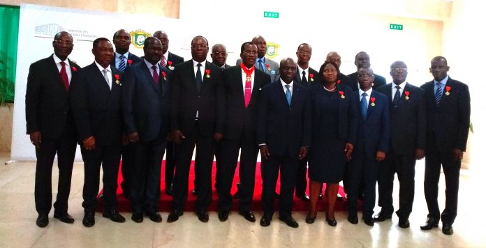 Ce lundi 18 février 2019, à la salle polyvalente du ministère des affaires étrangères, SEM Marcel Amon Tanoh, ministre des affaires étrangères, a procédé au nom du président de la république, à la de 19 Ambassadeurs Ivoiriens dans l’ordre du mérite de la nation en présence de M.Konté Yacouba, SG de la grande chancellerie de la côte d’ivoire, représentant la Grande Chancelière.