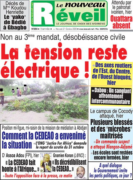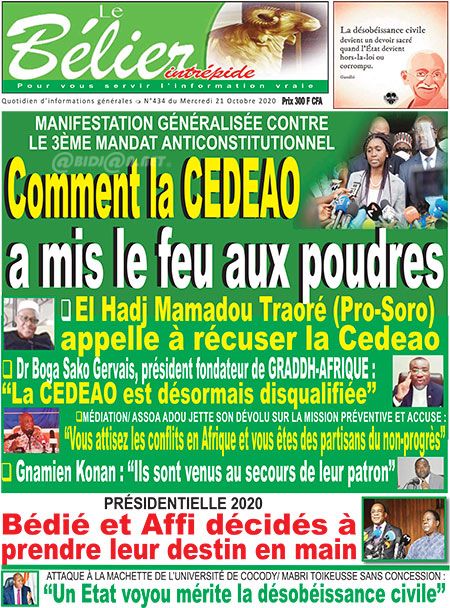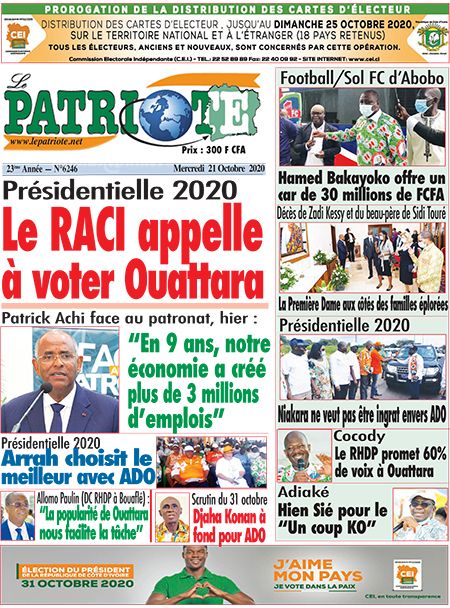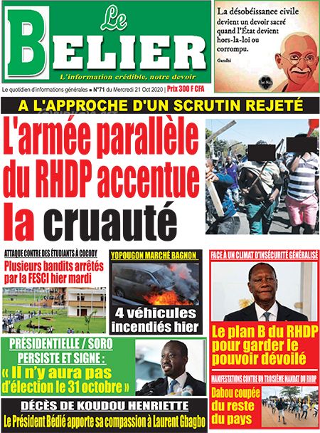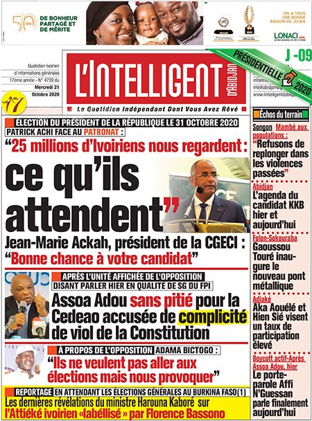 Politique les unes des principaux quotidiens ivoiriens du jeudi 21 octobre 2020 Par Carlo Symphonie - 21/10/2020 0 502 Partager sur Facebook Partager sur Twitter