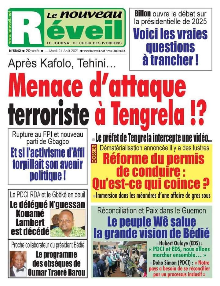 Culture Presse ivoirienne : les unes des quotidiens Par Carlo Symphonie - 24/08/2021 0 675 Partager sur Facebook Partager sur Twitter