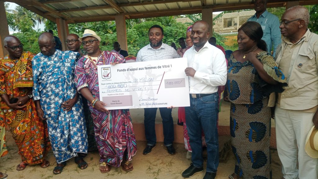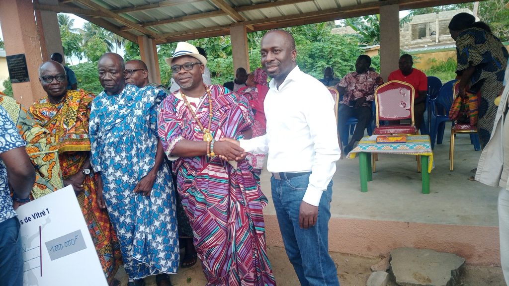 Le premier magistrat de la commune de Grand Bassam et son conseil municipal étaient hier samedi 2 juillet 2022 dans le village de Vitre 1. Cette visite de travail a été marqué par une remise de dons qui a eu lieu à l’école primaire publique du village. En effet, à l’occasion de la présentation de vœux des populations de Vitre 1 au maire de la commune de Grand Bassam, le premier magistrat de la ville historique avait promis un soutien significatif portant sur l’éducation , le financement des projets d’activités de revenues de la gente féminine, l’employabilité de la jeunesse et la réhabilitation du dispensaire urbain du village de Vitre 1. Choses promises choses dues. L’ambassadeur de l’UNESCO et par ailleurs directeur général de Sodexam, Jean Louis Moulot est venu honoré ses engagements. Ainsi, 50 tables bancs , un toboggan, un balançoire pour l’air de jeux ont été remis à l’école primaire publique de Vitre 1, un chèque d’un million de francs CFA pour financer les projets d’activités de revenues pour les femmes et des jeunes ont été inséré dans le projet TIMO. Et pour les jeunes désirants devenir des chefs d’entreprises , « ils peuvent saisir le service sociaux culturels car des opportunités de financement de projets sont disponibles » a instruit le maire. Restant dans la thèse du développement de proximité , Jean Louis Moulot a rappelé que les doléances portants sur la réhabilitation du dispensaire urbain et le reprofilage ne resteront pas lettre morte. << La réhabilitation du dispensaire est inscrit dans le budget triennale 2023. Quant au reprofilage de la voie et la pancarte d’indication du village le service technique de la mairie de Grand Bassam s’en charge dans les semaines à venir.>> a rassuré le maire Moulot. Exprimant leur gratitude au maire, la notabilité avec à leur tête Nanan Gino Djaman chef du village de Vitre 1 a souligné que l’avènement du péage de Grand Bassam est une bonne chose. Mais le coût est une autre chose. « négociez au plus haut niveau pour vos administrés» a laissé entendre Niamkey Jacques cadre du village. A cette préoccupation, le premier magistrat de la cité balnéaire a rassuré les populations « Nous sommes en pourparler avec les responsables du Fond Entretien Routier afin d’avoir une dérogation spéciale pour les populations de Grand Bassam » a conclu Jean Louis Moulot.