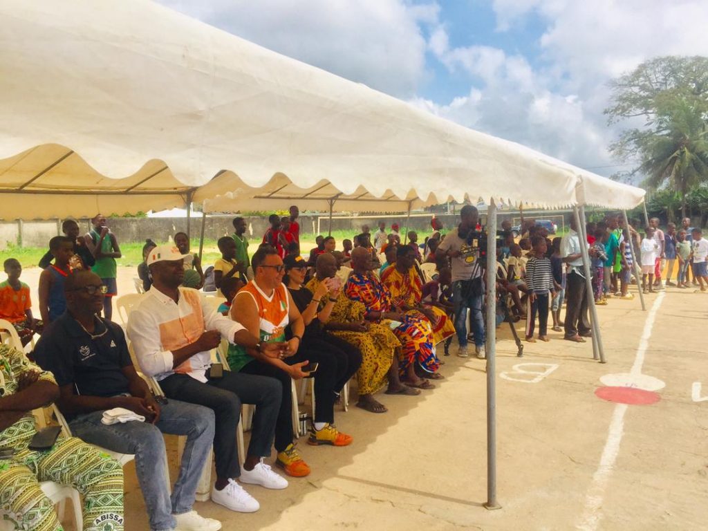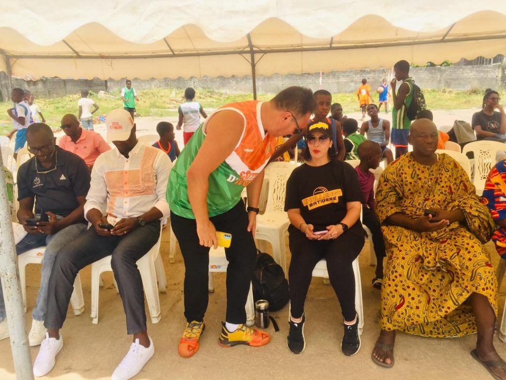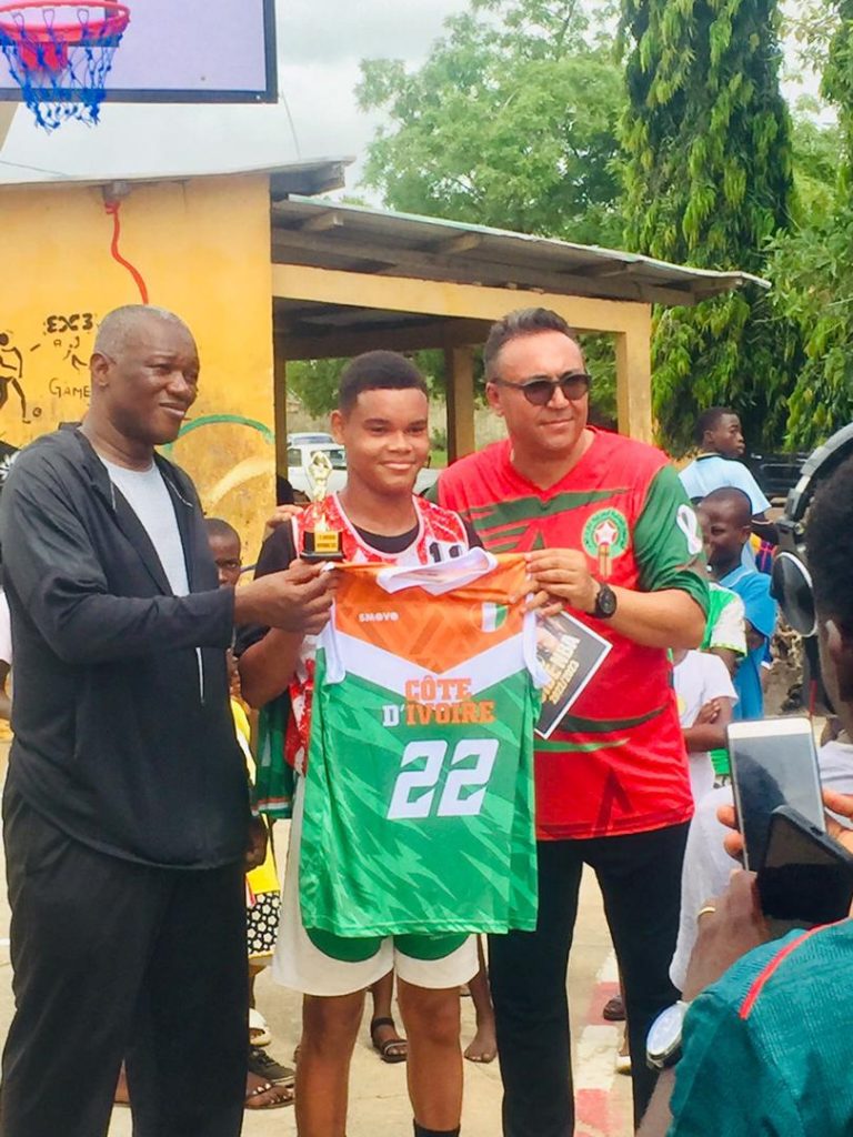 Le samedi 12 novembre 2022 l’association CESAM de l’ingénieur sportif , Mohamed Marrakchi a offert un terrain de basket ball à la ligue de basket ball du Sud-Comoe. Ce stade de basket ball 3×3 construit à l’EPP Moossou 1 et 2 a été réceptionné par Cristophe Patron président de la ligue du Sud-Comoe en présence, de l’inspecteur de l’enseignement primaire, du secrétaire de la ligue, coach Omer Yohou, d’un parterre de personnalité et des têtes couronnées.Notons qu’avant la remise du terrain de basket ball l’association CESAM et la ligue régionale ont organisé une série d’activités. ce projet a débuté le 10 novembre par une conférence à la salle des jeunes de la mairie de Grand Bassam. Cette rencontre portant sur le thème: les fondamentaux du basket 3×3 à été animée par Mohamed Marrakchi président de l’association CESAM et conférencier en ingénierie sportive. Dans cette tâche l’ingénieur sportif a été accompagné par Mme Fatna Chanane artiste peintre Marocaine. Elle, achèvera le programme des activités de collaboration des deux entités sportives par une conférence. Cette échange aura lieu le 16 novembre 2022 à l’Ecole Primaire publique de Moossou, et portera sur la peinture. Selon coach Omer Yohou » l’association CESAM est venue booster les activités de la ligue et lui donner un coup de main. C’est ainsi qu’un terrain de basket a été offert . Cette infrastructure sportive a été construit à EPP Moossou 1 et 2. Objet ,encourager les élèves de l’école primaire à la pratiquer du basket ball 3×3. Ce terrain a été décoré par des jeunes volontaires et l’artiste marocaine Fatna Chanane. Notons qu’en plus du terrain,l’association CESAM a offert des tablettes de coach au président de la ligue pour encourager les jeunes à s’intéresser au métier. Il a également tenu à honorer les anciens de la ville qui donnent un coup de main pour la promotion des jeunes, et du sport.Précisons que la journée inaugurale c’est achevée par un tournoi de 3×3 . Et cette compétition a mis en attraction les enfants de 12 -15 ans.ce tournoi a enregistré 9 clubs venus de Bonoua, Adiake et Bassam.Au terme du tournoi qui s’est âprement disputé, l’équipe de l’ascab de Bassam (Nexus) a eu raison de e Renaissance Basketball Bassam (kings).