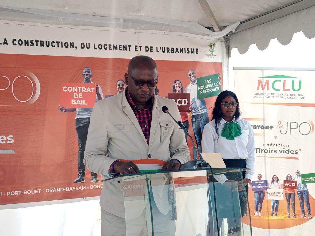 Du 02 au 17 décembre 2022 , s’est tenu dans les communes de Bingerville, Cocody, Koumassi, Port-Bouet , Grand-Bassam et Bonoua , la 2e édition de la caravane couplée des journées portes ouvertes dénommées « Opérations Tiroirs vides » placé sous l’égide de Bruno Nabagné Koné, ministre de la construction du logement et de l’urbanisme , sous la présence des partenaires au développement avec la participation des membres du ministère de la construction , des chefs coutumiers, des opérateurs économique. Cette caravane couplée de journée portes ouvertes dénommées « Opération Tiroirs vides » consacré au rapprochement des services du ministère de la construction des populations, informer et sensibiliser sur les bonnes pratiques, apurer le stock des actes disponibles et en attente, informer sur les réformes de l’Arrêté de Construction Définitive, du Permis de Construction et du contrat sécurisé de bail à usage d’habitation, s’est déroulé en six étapes. A l’ouverture et aux étapes de Bingerville, Cocody, Koumassi, Port-Bouet, Bonoua, les équipes du ministre Bruno Nabagne Kone ont offert un cadre privilégié d’échanges avec les populations et parcourir les différentes communes . Cette caravane qui vise à renforcer la crédibilité des Services du Ministère de la Construction du logement et de l’Urbanisme dans le district d’Abidjan, a permis aux équipes du ministère de dévoiler les nouvelles réformes, du Permis de Construire et le Contrat sécurisé de bail à usage d’habitation . En effet, a cette occasion les experts de la construction ont informé et sensibiliser les populations sur l’ACD ( Arrêté de Construction Définitive). A la clôture à Grand Bassam en présence des autorités administratives, politiques, coutumières et religieuses de la commune le ministère de la construction, du logement et de l’urbanisme a offert au parking de l’hôtel Golden palace durant jours plusieurs stands d’experts en bâtiments et aménageurs fonciers. Ces deux jours ont été l’occasion pour le ministère de rapprocher ses services aux populations. « Informer et sensibiliser sur les bonnes pratiques ,apurer le stock des actes disponibles et en attente Informer sur les réformes de l’ACD, du Permis de construire et du contrat sécurisé de bail à usage d’habitation. » Ont été les lettres d’or de la dernière étape de la 2e édition de la caravane couplée de journée portes ouvertes dénommées « Opération Tiroirs vides » Notons qu’a cette occasion des permis de constructions et des ACD ont été remis à des opérateurs immobiliers.
