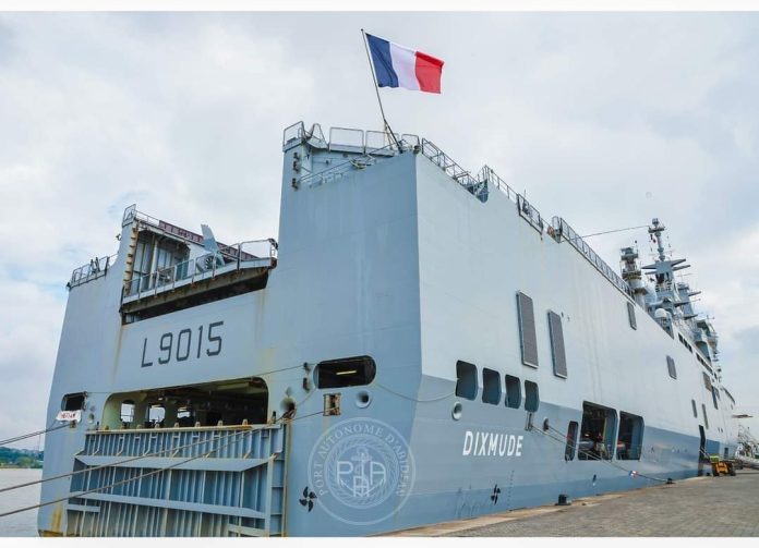 Le Port d’Abidjan a accueilli le 17 octobre 2024, le navire militaire français DIXMUDE, en escale jusqu’au 22 octobre prochain. À son arrivée, le Commandant du navire, le Capitaine de Vaisseau Jocelyn Delrieu, accompagné de quelques membres de l’équipage, a rendu visite à l’Autorité Portuaire d’Abidjan, représentée par M. Macky Sangaré, Directeur du Système d’Information Numérique (DSIN). Le DIXMUDE est présent dans les eaux ivoiriennes pour une opération de coopération avec les marines riveraines du golfe de Guinée, visant à renforcer la sécurité maritime dans la région. Cette escale marque une étape importante dans les efforts de coopération entre la France et la Côte d’Ivoire pour assurer la sécurité maritime dans le golfe de Guinée. Le DIXMUDE restera au port jusqu’au 22 octobre, permettant des échanges fructueux entre les autorités civiles et militaires.