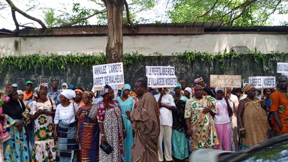 Devant la préfecture, M. Gnouan Joseph, conseiller à la chefferie, a lu une motion de protestation au nom de la communauté, entouré du porte-parole du village, de la reine mère, des responsables de jeunesse et du port-canne. Le document appelle Mme Nassou Sidibé, Préfet du département de Grand-Bassam, à annuler l’arrêté de nomination de Konney Ahoua Simon et à reconnaître Konney Jonas Simon comme le choix légitime et consensuel du peuple de Modeste.“Nous ne pouvons accepter qu’un chef démissionnaire continue d’agir contre notre volonté. Le peuple a parlé, et son choix est clair : Konney Jonas Simon,” a déclaré un manifestant.