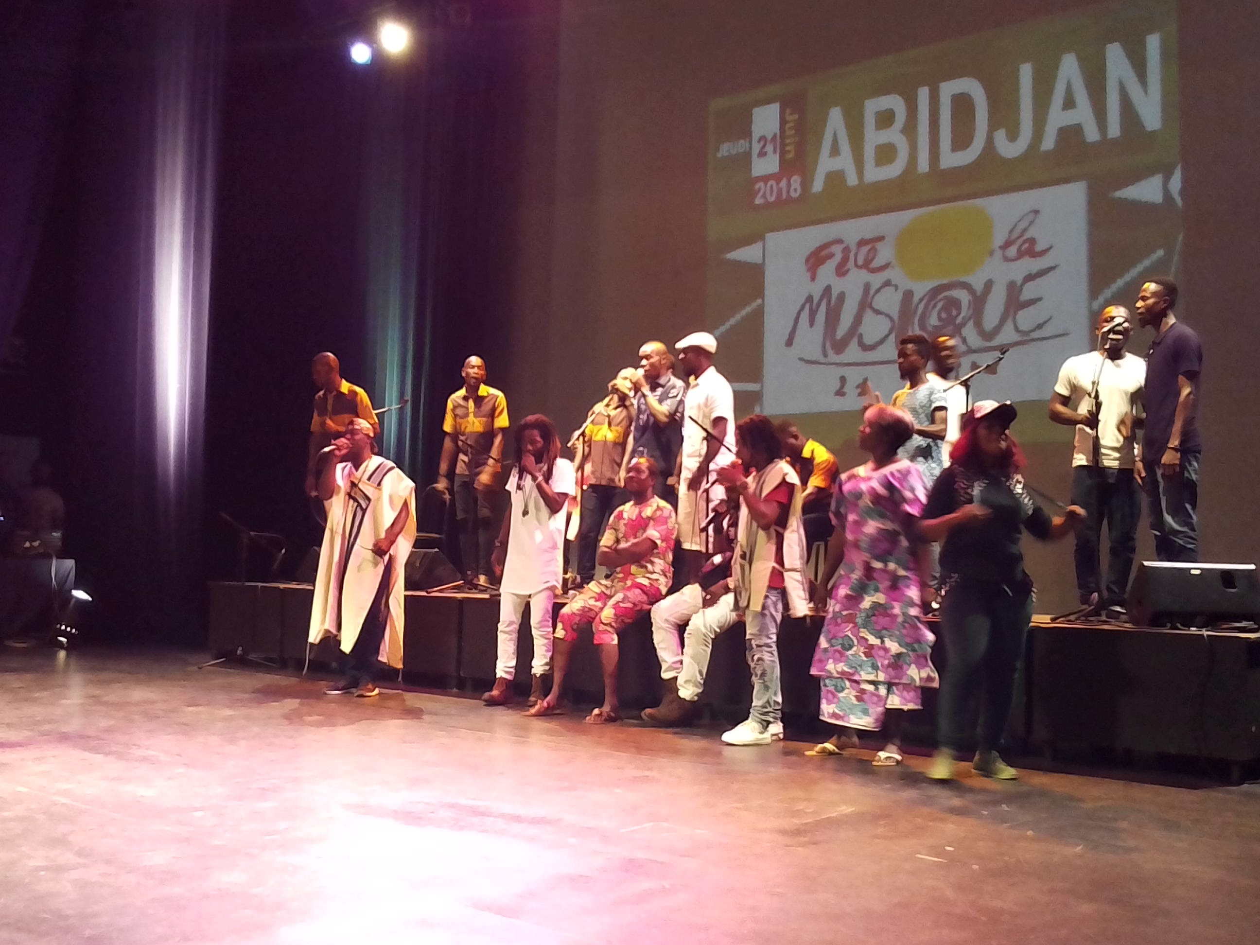 A l’initiative de la coordination de la fête de la musique en Côte d’Ivoire, la salle des spectacles de l’Institut Français a vibré au son de la musique de la côtière, le jeudi 21 Juin 2018 à l’occasion de la célébration de la 25ème édition de la fête de la musique. Les meilleurs groupes musicaux de la côtière, Aboutou Roots, Nigui Saff K Danse, A Nous Les Petits et Esso Taboth ont donné de l’ambiance festive. Cette 25ème édition de la fête de la musique s’est déroulée autour du thème : « Musique et développement durable ». La fête de la musique est un événement culturel universel qui se tient dans près de 120 pays dans le monde depuis 1982. En Côte d’Ivoire, pour cette édition 2018, la Coordination de la fête de la musique en Côte d’Ivoire et l’Institut Français ont mis l’accent sur la promotion de la créativité, autour de la valorisation des instruments de musique fabriqués à l’aide d’objets de récupération ; d’où le thème de musique et développement durable. Les objectifs cette année sont de célébrer la musique et ses acteurs, à travers la promotion de la pratique de l’instrument de musique, de soutenir la créativité et le développement durable. Les festivités ont débuté par la prestation du groupe musical Esso Taboth. S’en est suivi les autres prestations des groupes A Nous Les Petits, Nigui Saff K Danse, promoteur de la danse Mapouka et le mythique groupe de Youssoumba Aboutou Roots. Il faut souligner que la 25ème édition de la fête de la musique a été un moment d’hommage aux victimes des inondations de la pluie du lundi 18 au Mardi 19 Juin à Abidjan.