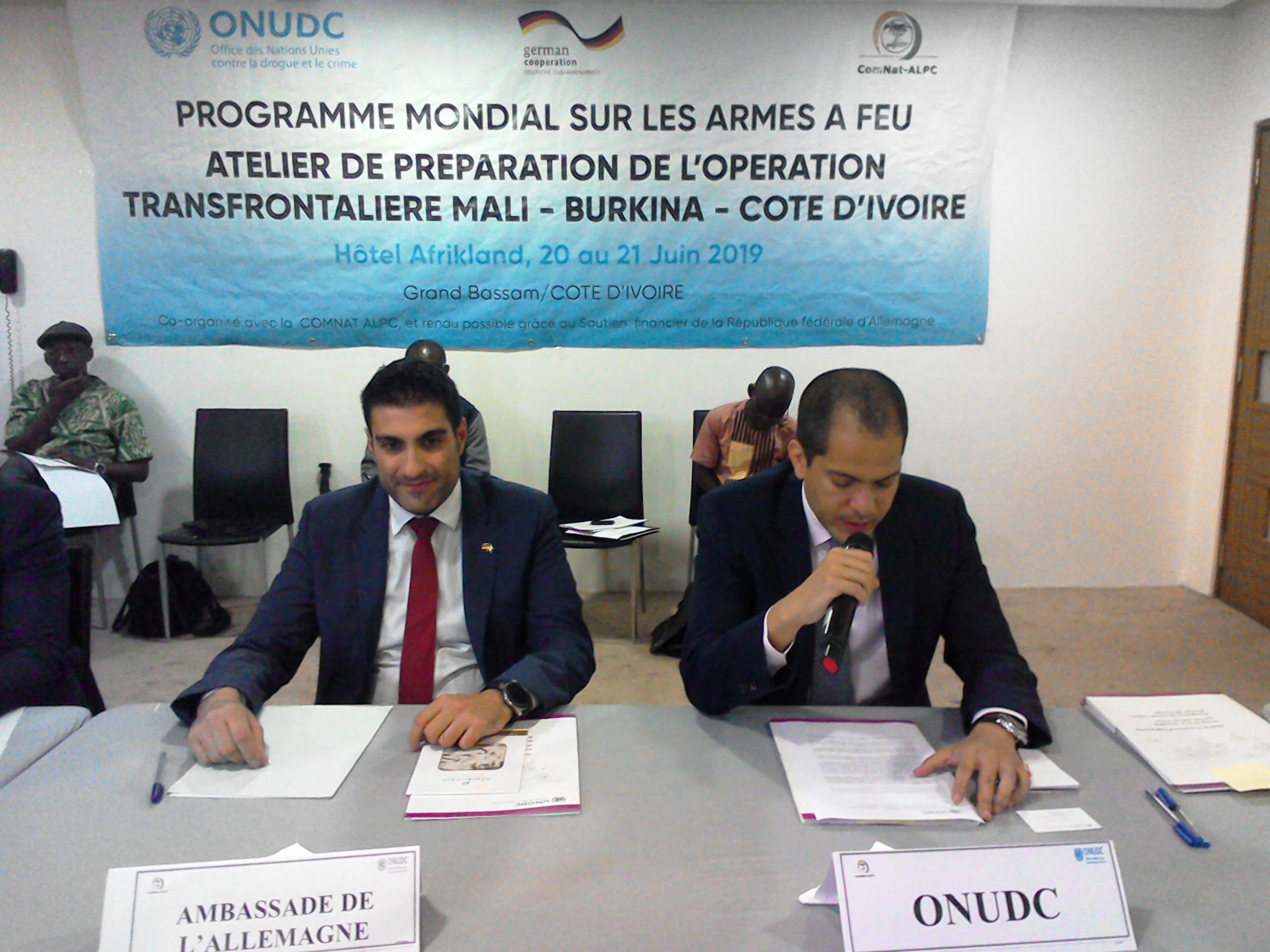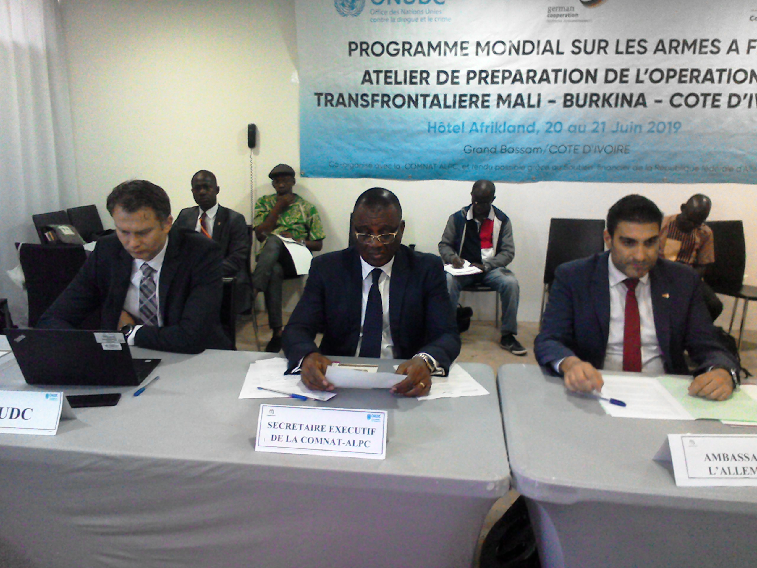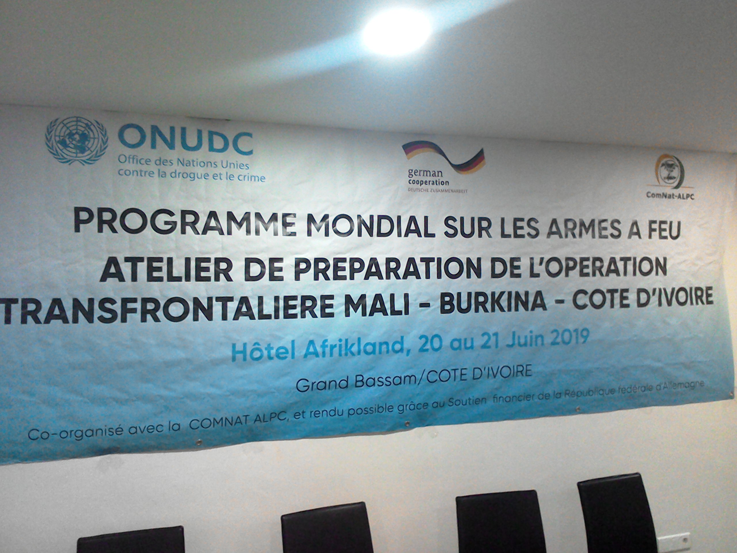Ce jeudi 20 juin 2019 à Afrikland hôtel de Grand-Bassam s’ouvre la première réunion de planification portant sur l’appui à la Commission nationale des armes légères de la Côte d’ivoire sur le renforcement des capacités des agences chargés de l’application des lois en matière de détection des trafics illicites d’armes à feu aux niveaux transfrontaliers . Cet atelier organisé par l’Office des Nations Unies contre la drogue et le crime avec la collaboration German Coopération et ComNat-Alpc prend fin le 21 juin 2019. Les images de lancement du programme mondial sur les armes à feu atelier de préparation de l’opération transfrontalière Mali-Burkina-Faso-Côte d’Ivoire