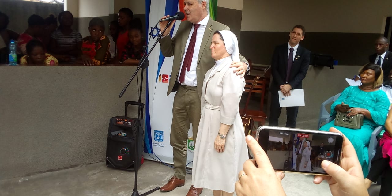 Une forte délégation de l’ambassade avec sa tête son Excellence Monsieur LÉO Vinovezky , l’ambassadeur d’Israël en Côte d’Ivoire était au cœur du Centre Médicosocial Sainte-Thérèse de l’enfant Jésus ce lundi 20 janvier .Une visite du diplomate de l’Etat hébreu ponctué par le don d’une enveloppe à cet établissement . Le bien-être des populations tient une place de choix dans la politique de l’État d’Israël .Et partout dans le monde , là où le besoin se fait sentir l’État hébreu ne lésine sur aucun moyen pour intervenir . C’est pleinement dans ce cadre que s’inscrit la visite de Son Excellence Monsieur Léo Vinovezky, l’ambassadeur d’Israël en Côte d’Ivoire au Centre Médicosocial Sainte-Thérèse de l’enfant Jésus. Sortis massivement ,les différents apprenants et le personnel du Centre Médicosocial Sainte-Thérèse de l’enfant Jésus ont réservé un accueil des plus chaleureux à l’hôte de marque .C’est dans une ambiance aux sonorités israéliennes avec Mme Monica Vinovezky accompagnée de son époux et illuminée par des chorégraphies Ivoiriennes que la rencontre s’est ouverte. Première à ouvrir le chapitre des allocutions ,Honorine Sorgho a traduit toute la joie des nombreux pensionnaires de voir l’ambassadeur israélien et toute sa suite. » C’est un réel plaisir pour nous de vous recevoir ce matin parmi nous .En dépit de votre emploi du temps hyper chargé,vous avez tenu à nous consacrer une partie de votre précieux temps. Cela montre une fois encore le dégré d’amour, d’affection et de sympathie que vous avez pour les mamans, les enfants en général et tous les enfants démunis en particulier. Nous saisissons cette opportunité pour vous témoigner notre profonde gratitude. Puisse Dieu continuer de vous venir davantage » , a indiqué l’apprenante en classe de CE2.S’en est suivie la remise officielle de l’enveloppe à Dalia Palacio, la Responsable de la cantine et l’alphabétisation. Heureuse de ce geste ,la sœur a au nom des pensionnaires et tout le personnel a remercié l’ambassade d’Israël. » Je tiens à exprimer mon infinie gratitude au nom des mamans ,des enfants , le personnel et toutes les sœurs de la congrégation à Monsieur l’ambassadeur ,son épouse et tous ses collaborateurs .Que Dieu vous bénisse. » ,a déclaré la sœur. « Nous sommes tous des frères » Revenant sur la portée de ce don ,Son Excellence Monsieur Léo Vinovezky a profité pour livrer un message de paix et d’acceptation des autres. » C’est avec un grand plaisir que toute l’équipe de l’ambassade s’est déplacée pour apporter cette petite contribution à ce centre qui œuvre dans la santé et l’éducation. Notre contribution permettra d’acheter les tensiomètres, les pèse-bébé et des chaises pour les personnes handicapées. Elle s’incrit dans le cadre de la solidarité sociale .Nous sommes tous des frères. Les juifs,les musulmans ,les chrétiens, nous sommes tous les enfants de Dieu. C’est donc naturel d’apporter notre contribution .C ‘est également un message de paix que nous apportons. » a fait savoir le diplomate israélien avant d’ajouter que ce don n’est pas le dernier. » Nous avons à l’ambassade un programme de développement et d’assistance sociale. C’est la première activité de 2020 que nous organisons aujourd’hui mais ce n’est pas la dernière. En février et mars prochain nous interviendrons selon le programme de l’ambassade. Je voudrais souligner qu’un des pilliers de notre ambassade est le travail social. »a -t-il conclu. Geneviève Dahon ,la présidente du Comité concours Awoulaba Côte d’Ivoire , Josée Gnomb ( Awoulaba 2019) et un émissaire du comité national Miss Côte d’Ivoire étaient de la visite. Cette journée mémorable pour le Centre Médicosocial Sainte-Thérèse de l’enfant Jésus s’est achevée par une visite des locaux .