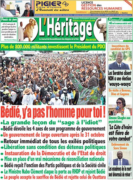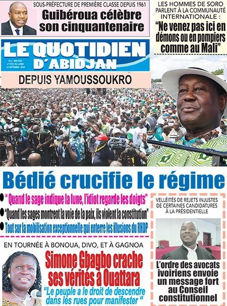 Nos Une les unes des quotidiens ivoiriens du lundi 14 septembre 2020 Par Carlo Symphonie - 14/09/2020 0 865 Partager sur Facebook Partager sur Twitter