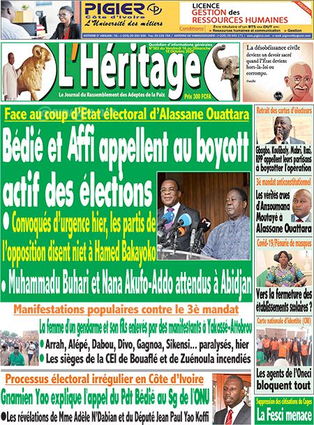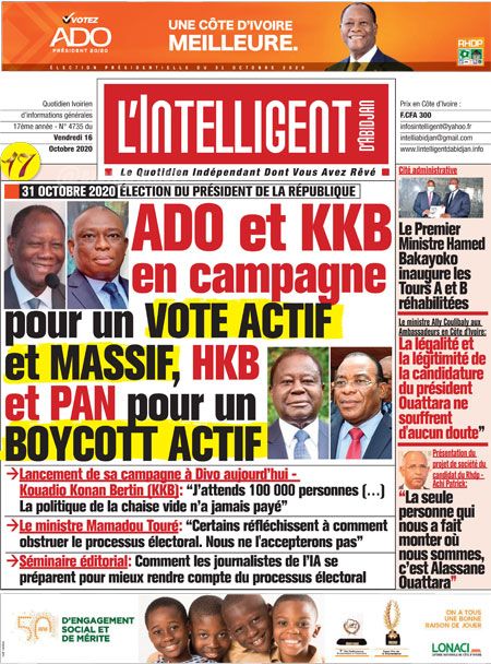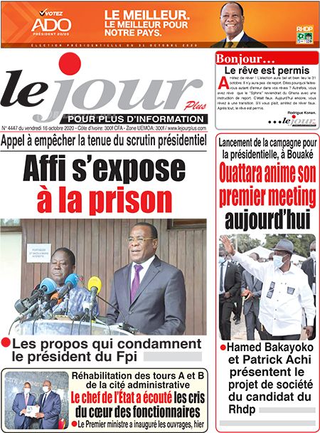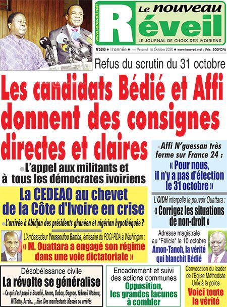 Politique les unes des principaux quotidiens ivoiriens du vendredi 16 octobre 2020 Par Carlo Symphonie - 16/10/2020 0 509 Partager sur Facebook Partager sur Twitter