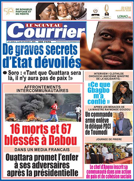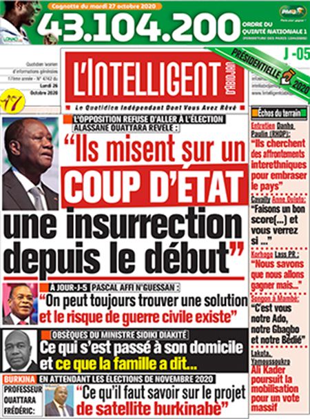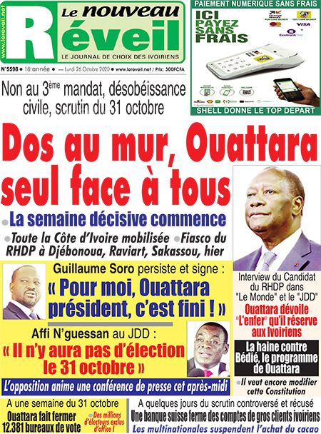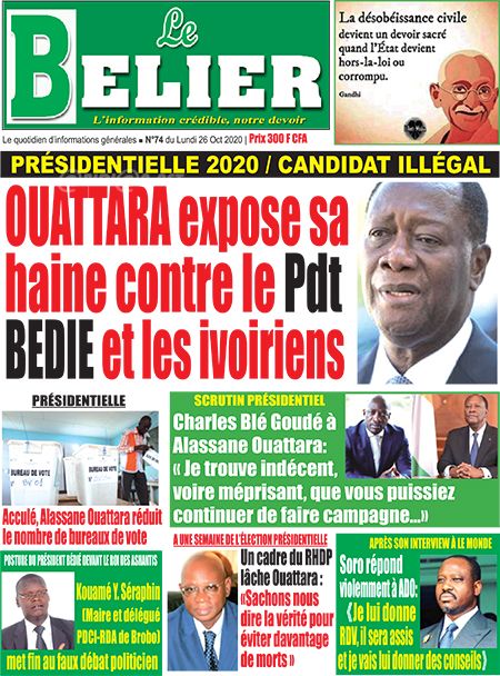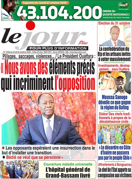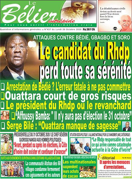 Politique les unes des principaux quotidiens ivoiriens du lundi 26 octobre 2020 Par Carlo Symphonie - 26/10/2020 0 445 Partager sur Facebook Partager sur Twitter