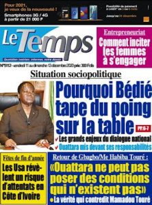 Politique Revue des titres des quotidiens ivoiriens : Bédié demande la libération des prisonniers politiques Par - 11/12/2020 0 679 Partager sur Facebook Partager sur Twitter