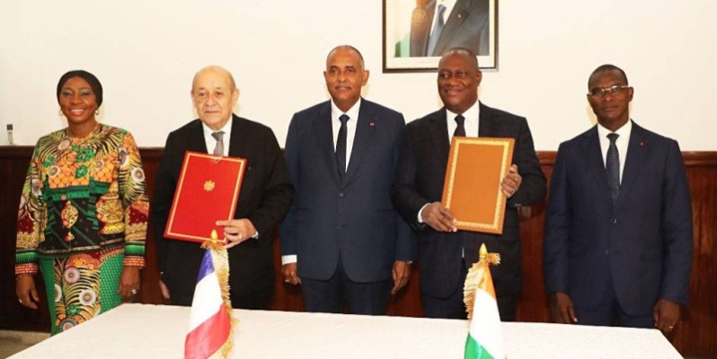 Le document a été paraphé par le ministre d’État, ministre de la Défense, Téné Birahima Ouattara représentant la partie ivoirienne et le ministre français de l’Europe et des Affaires étrangères, Jean-Yves Le Drian.