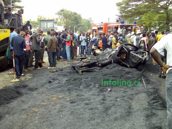 Un drame c’est produit à Cocody précisément au carrefour « la vie »ce jeudi 5 octobre 2017. En effet un gros camion berne contenant du sable de goudron chaud a déversé son contenu sur un véhicule de marque Mercedes. Ce véhicule avait à son bord deux enseignants. A savoir, Aboi Koukoua, professeur et Kra Pauline, institutrice.